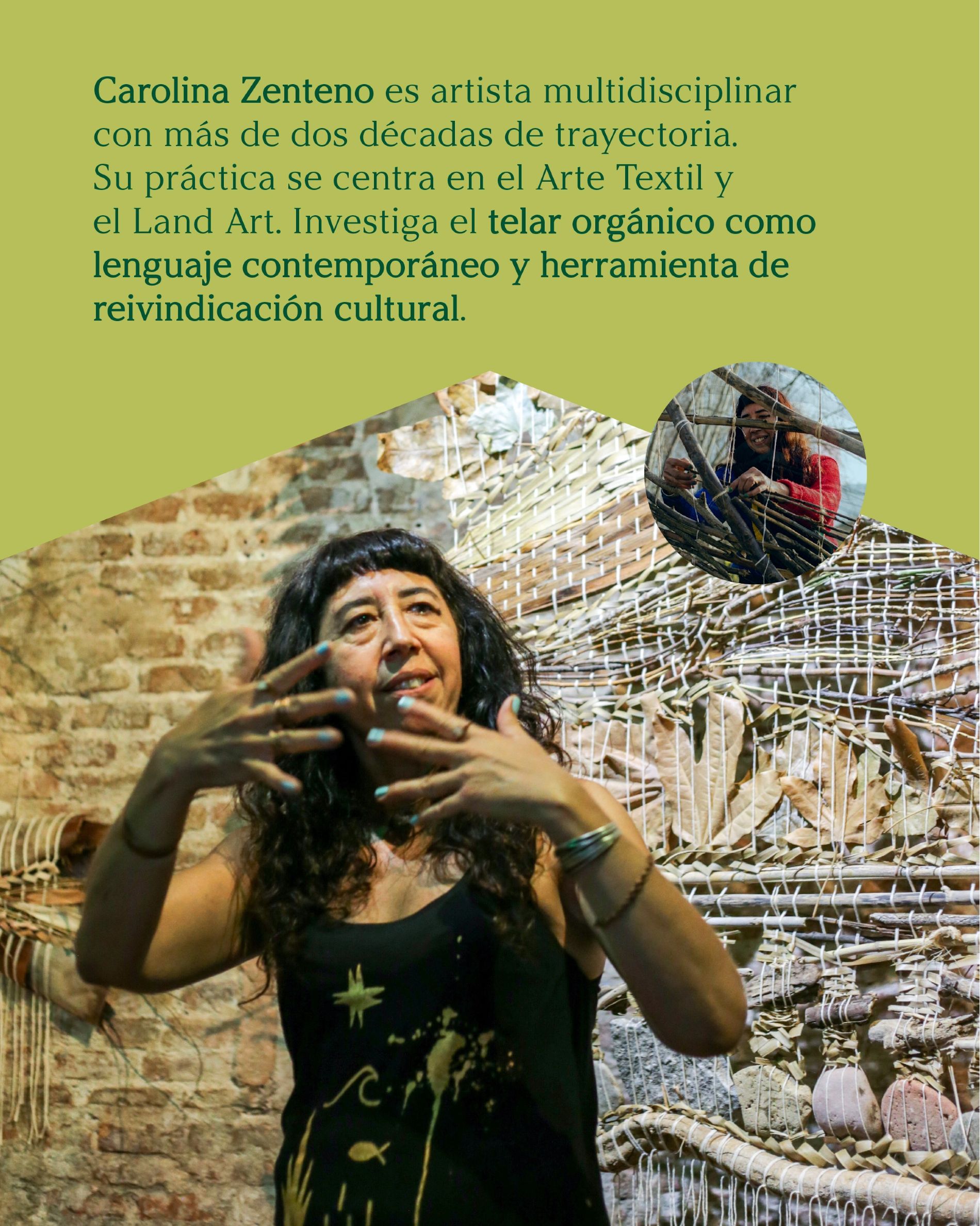 Nuestra primera cita será el 18 de abril, un taller de telar orgánico, con Carolina Zenteno (Chile), artista multidisciplinaria con más de dos décadas de trayectoria, y su práctica centrada en el arte textil y el Land Art, destacando especialmente por su investigación en el telar orgánico como lenguaje contemporáneo y herramienta de reivindicación cultural.